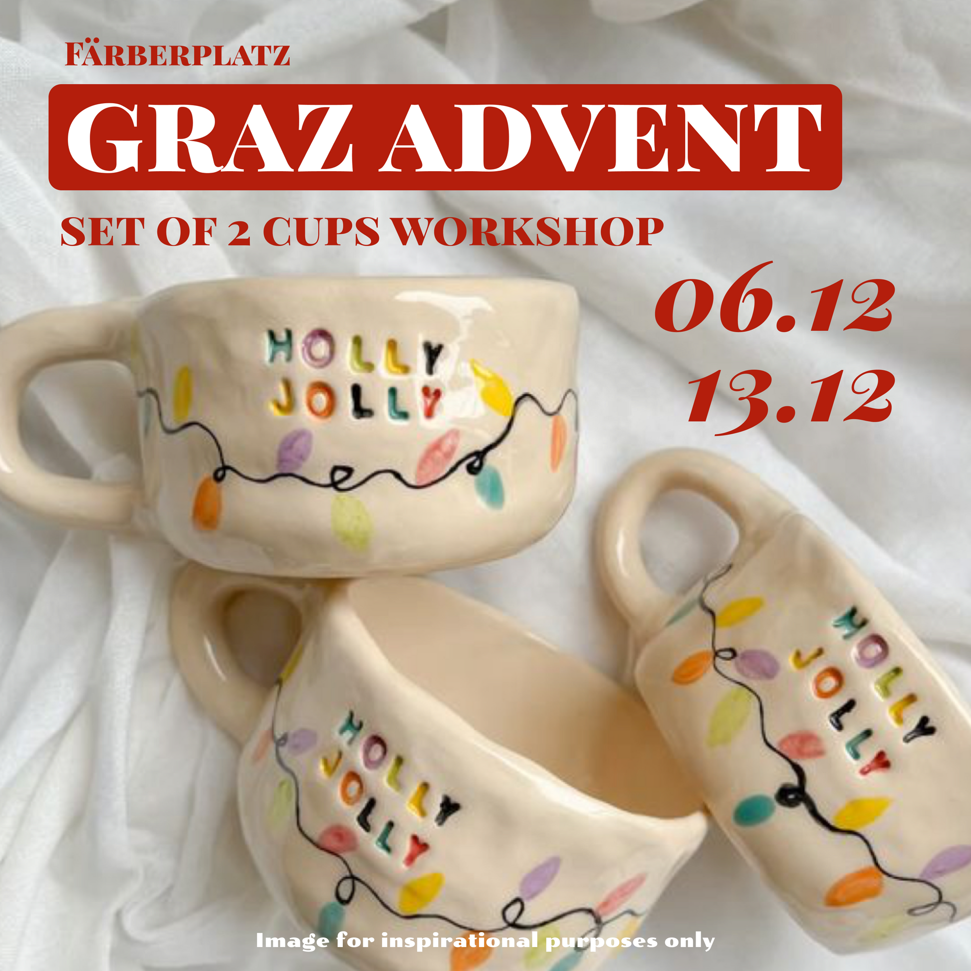 Na našoj radionici gline izradit ćete dvije jedinstvene ručno izrađene božićne šalice – savršene za ugodne zimske večeri uz kuhano vino, vrući kakao ili čaj.